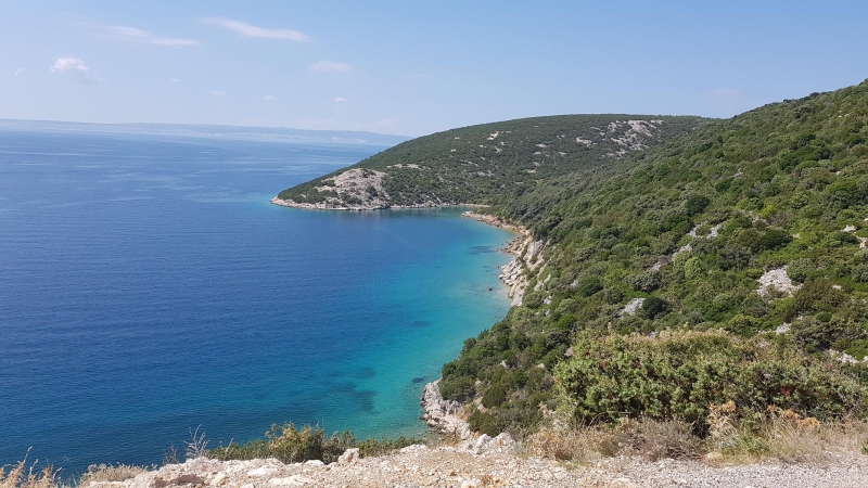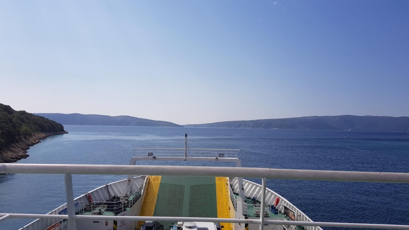 Die warme Sonne, der fast wolkenlose Himmel und die Aussicht, dass wir heute nur eine sehr kurze Etappe auf unserem Rückweg in die Schweiz fahren werden, liessen die Müdigkeit aber rasch vergessen. Nach einer kleineren, aber recht hügeligen Rundfahrt auf der Insel Krk, setzten wir uns schon bald auf die Fähre, hinüber zur Insel Rab.