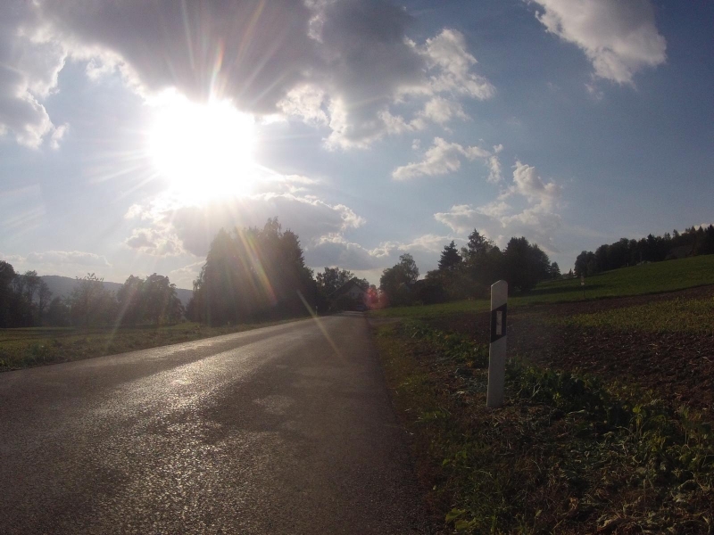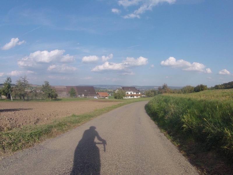 Wegen der fortgeschrittenen Zeit steht die Sonne nun bereits schon etwas tiefer. Das Furttal verläuft ziemlich genau in westlicher Richtung. Es wird schwierig für die Kamera am Lenker, in diesem Gegenlicht noch etwas Brauchbares zu verpixeln.