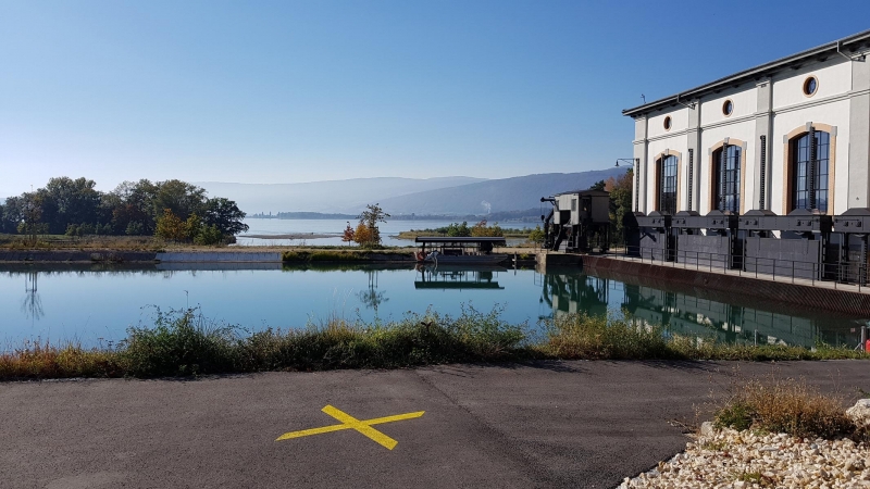 Die Stelle, an der die Aare in den Bielersee fliesst hat es verdient, kurz innezuhalten. Parallel zum Hagnek – Kanal gibt es hier ein Wasserkraftwerk. Der Radweg wird ziemlich kompliziert und mit vielen Kurven um und durch die Anlage geführt.