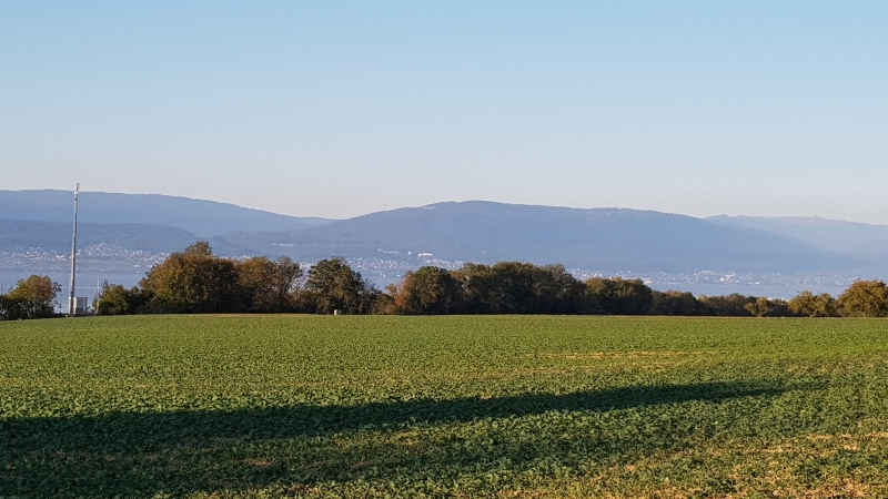 Zwischen Bielersee und Neuenburgersee verlasse ich die Radroute 50 (Jurasüdfuss-Route). Sie wechselt hier an die Nordseite des Neuenburgersees. Ich möchte aber auf der Südseite des Sees bleiben und habe mir dazu die Radroute 5 (Mittelland-Route) ausgelesen. Doch zuerst gibt es nochmals einen Blick an den Jura hinüber.
