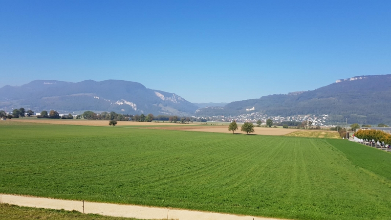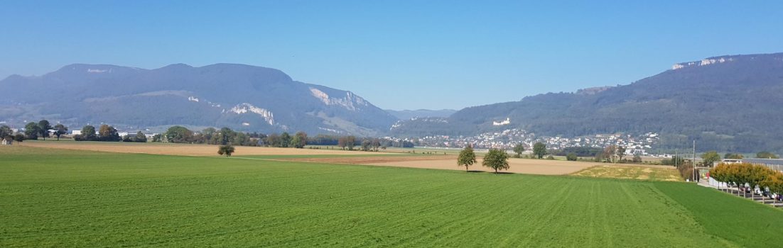 Schön finde ich an dieser Strecke, dass sie nicht allzu nahe dem Jura entlang fährt. So bekommt man sehr oft eine sehr schöne Sicht auf die südlichste Bergkette des Jura. Ausser in der Umgebung von Solothurn, da geht es recht steil an der Juraflanke in die Höhe, dafür gibt es dann für einmal einen Blick auf die andere Seite, zu den Alpen hinüber.