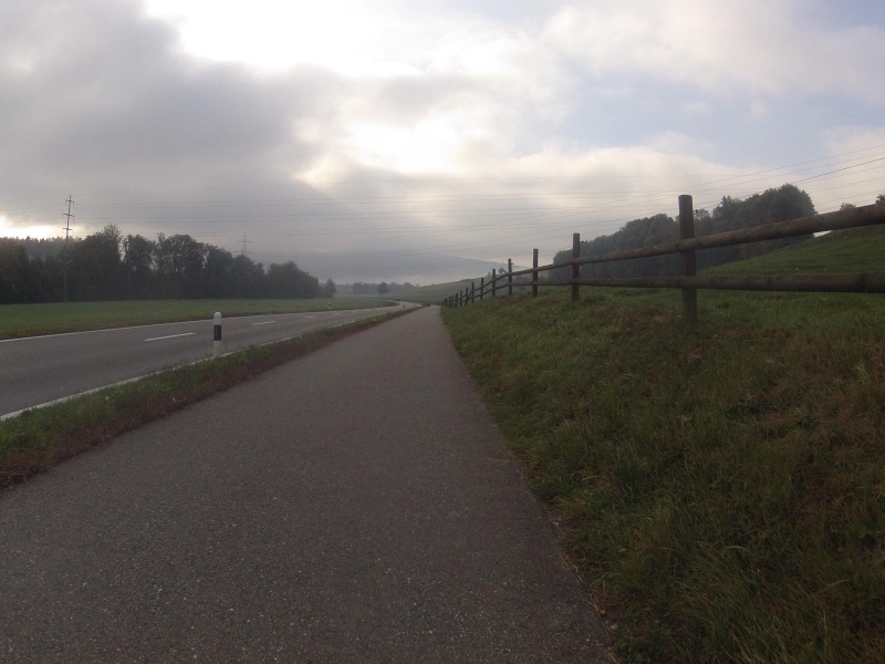 Anschliessend ging es das Furttal hinunter, durch die Agglomeration Baden-Wettingen hinüber ins Reusstal. Auch dort die gleiche graue Decke wie überall. Erst als ich zu Hause durch die Quartiere rollte, da schaffte es dann die Sonne in einem weiteren Anlauf doch noch, die Nebeldecke zu vertreiben. Ein wolkenloser, sonniger Tag zeigte sich. Da war ich heute wohl ein paar Stunden zu früh unterwegs.