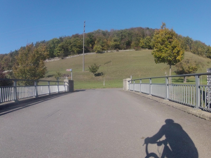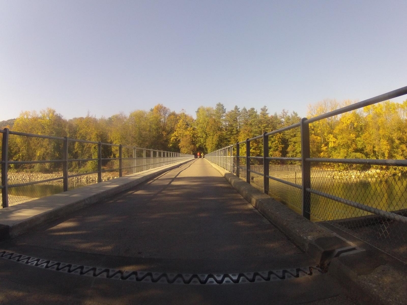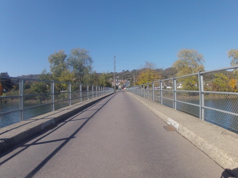 Es würde die Brücke über den Talbach folgen, der das Schenkenbergertal entwässert. Da hat die Kamera am Lenker gekniffen. Zu klein die Brücke, zu viel Gegenlicht, da wurde nichts draus. Besser geworden ist die Überfahrt auf der Brücke über die Aare bei Wildegg.