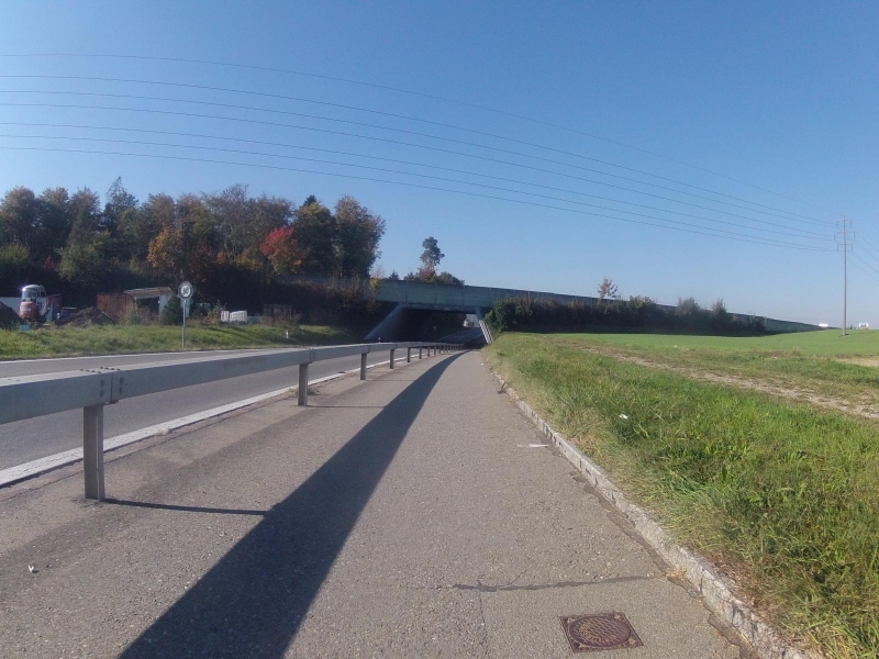 bevor ich wenig später eine Weile lang entlang der Autobahn A1 fahre. In Birrhard ist es dann so weit, dass ich diese Autobahn bei einer weiteren Brücke unterqueren kann.