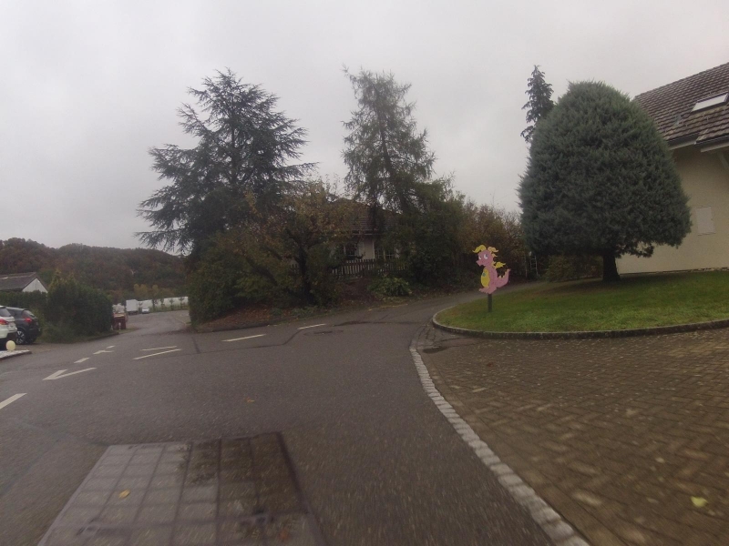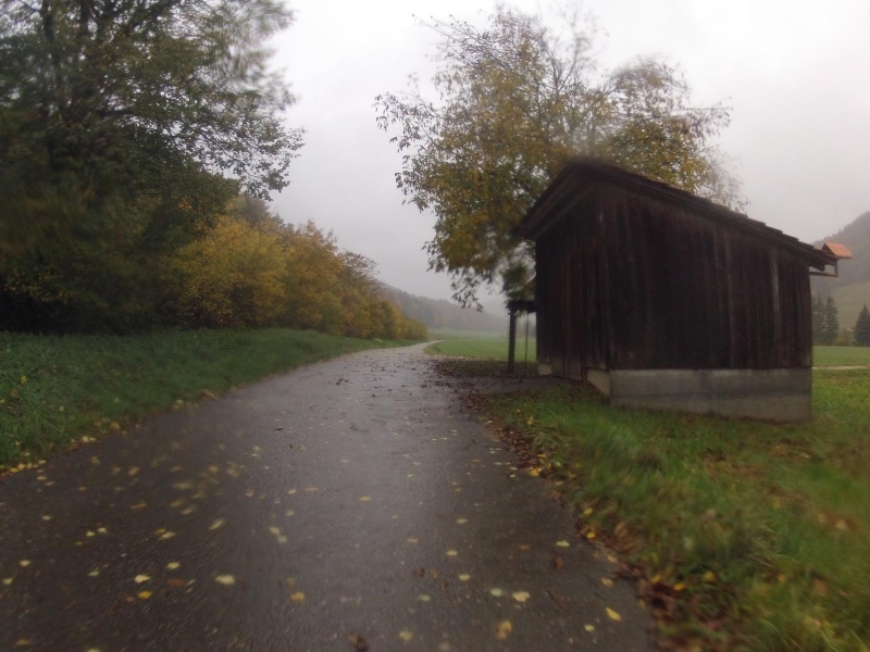Entgegen der Erwartung, dass es ab Mittag nicht mehr regnen würde, nieselte es weiterhin vom Himmel herunter. Dazu hingen die Wolken meist tief und es blies ein kalter Wind. Hier konnte ich mich wenigstens einen kurzen Moment treiben lassen, bevor es dann nach Mönthal, auf der anderen Seite des Baches wieder zurück ins Villigerfeld ging.