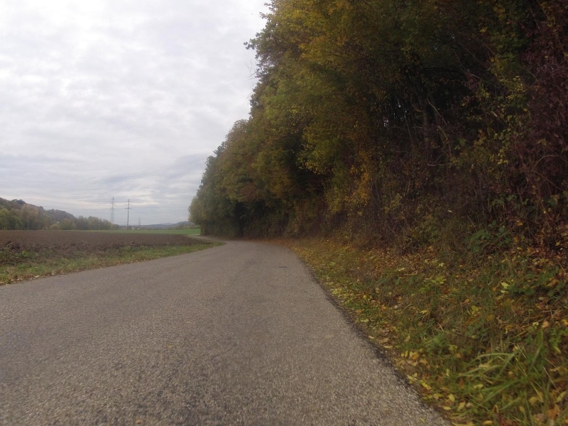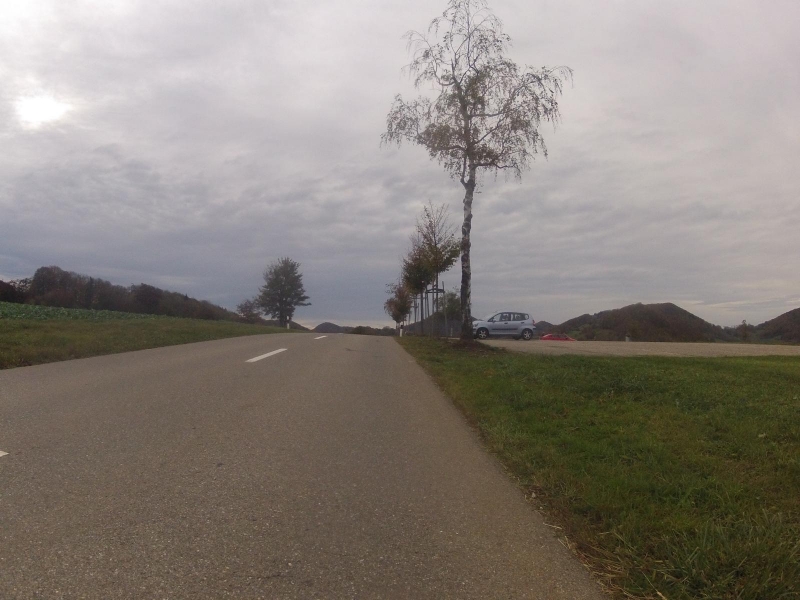 Als ich oben ankam, war die Sonne schon wieder durch die Wolkendecke verdeckt. Ich liess es auf der anderen Seite in Richtung Fricktal hinunter rollen. Der Wind, ein bisschen unberechenbar, drückte immer wieder am Vorderrad herum. Ich benützte aber nicht nur deshalb vor allem die Radwege und die kleinen Strässchen. Im Fricktal hielt ich weiterhin in nördlicher Richtung zum Rhein.