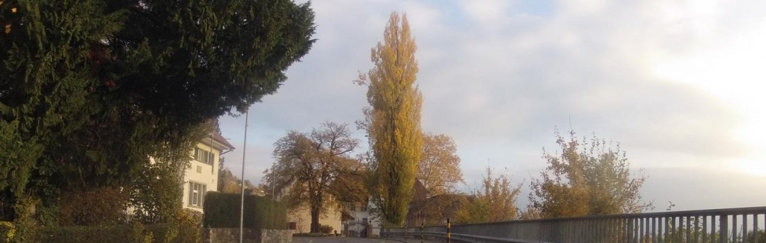 Da stehen doch diese beiden Pappeln am Hallwilersee, die eine beim Schloss Brestenberg, die andere etwas weiter vorne und näher am See. Vielleicht habe ich ja Glück und der Herbst hat sie bereits schön gelblich eingefärbt. Da wollte ich heute hin.