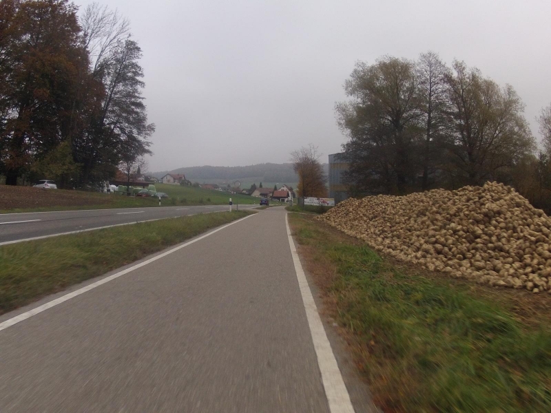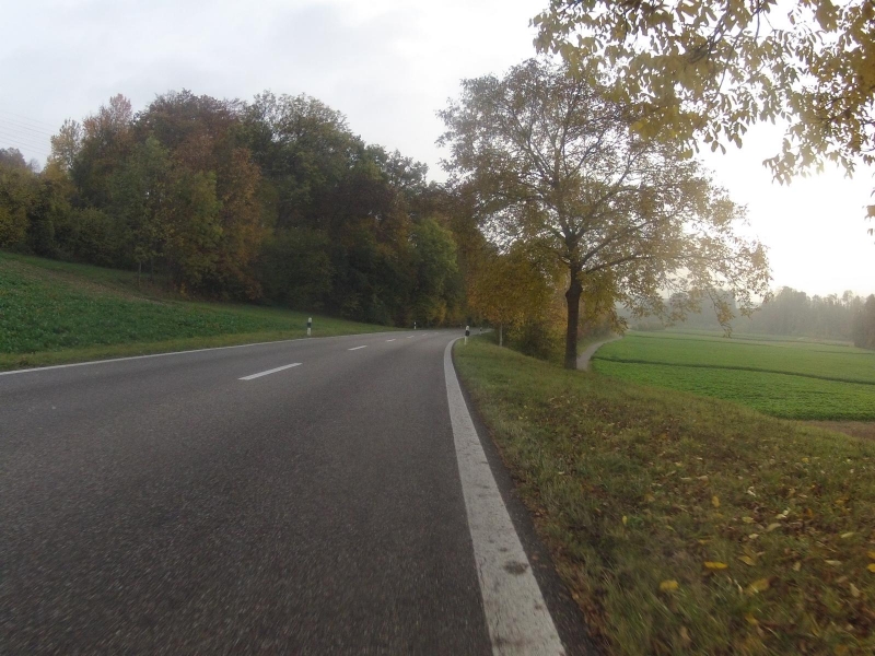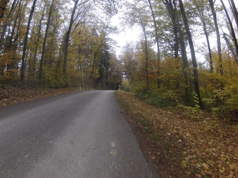 bog bei Döttingen links weg ins Surbtal. Tatsächlich konnte ich hier die Sonne eine Weile lang, als helle graue Scheibe am Himmel erkennen. Für einen Schattenwurf auf der Strasse reichte es aber nicht.