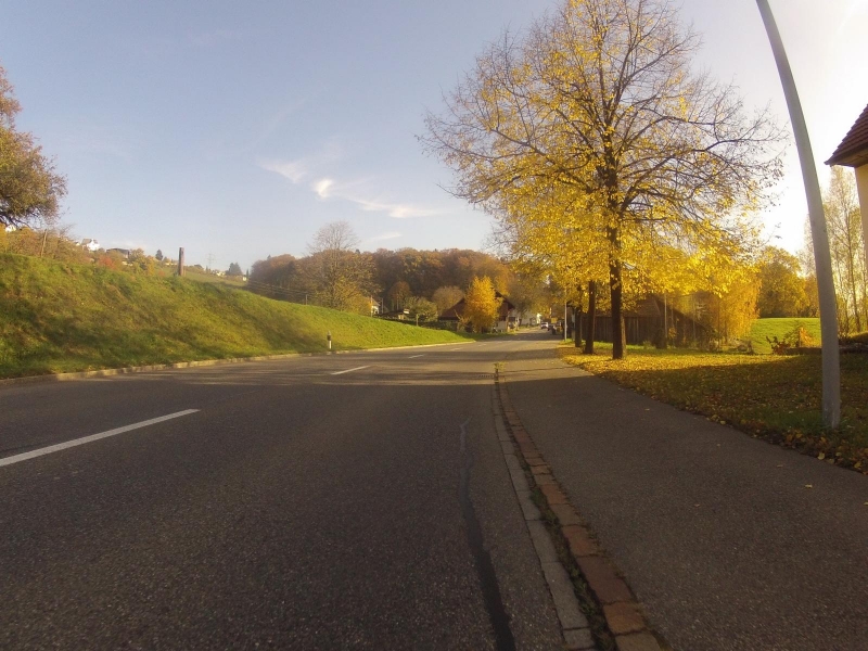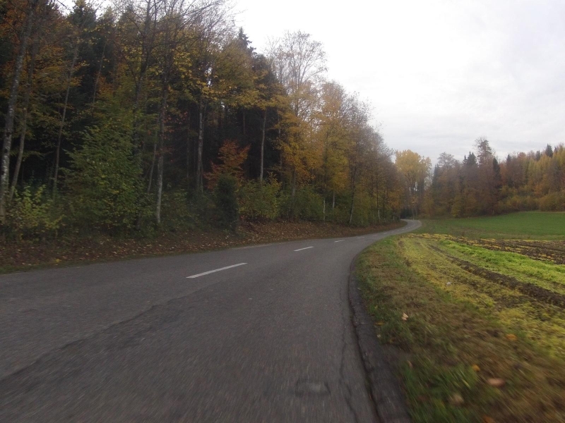 Noch weiter hinunter und ich komme nach Lenzburg. Ab jetzt ist es für die Kamera am Lenker zu dunkel. Die Strassen und das Gebüsch verschmiert es auf den Fotos immer heftiger.