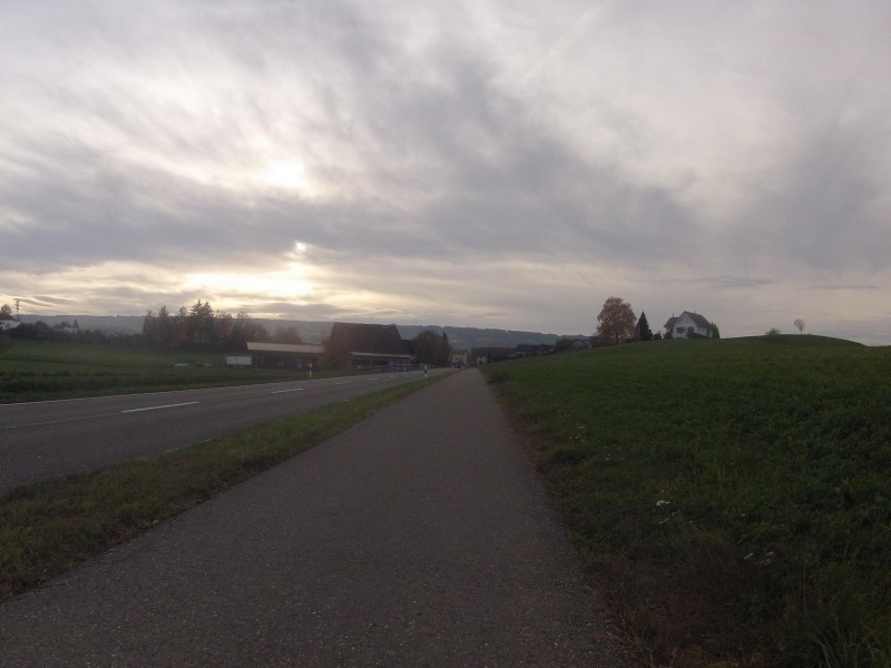 Ich kam gut voran. Noch ist es hell genug. Nach Wohlen überquere ich das Bünztal nach Villmergen hinüber. Etwas weiter unten bei Dintikon verlasse ich es, kurble in die Höhe hinauf und gelange nach einer Abfahrt nach Ammerswil hinunter.