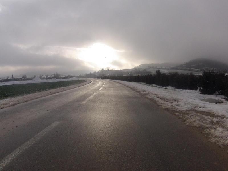 Ich hatte sogar ein paar Mal das Gefühl, als ob der Untergrund schon wieder gefroren sei. Es rollte so merkwürdig “weich” auf der sonst recht rauhen Strasse.