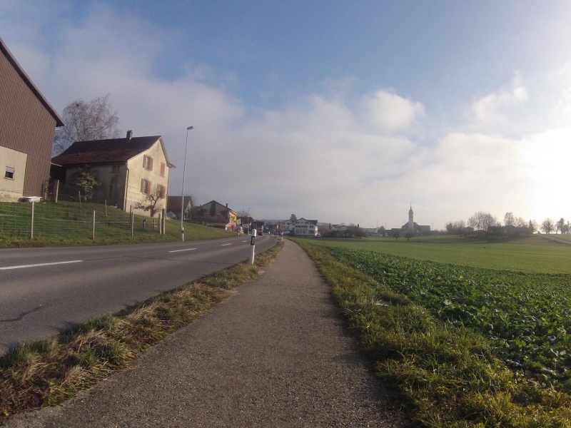 Der letzte Sonnenstrahl erwischt mich kurz vor Hochdorf. Danach wird es wieder trüb, wie immer in den letzten Tagen. Ich fahre noch ein Stück in Richtung Luzern, denn in der Zwischenzeit habe ich mich entschlossen, heute wieder einmal einen 100er zu fahren und damit auch den Granfondo bei Strava für den Dezember abzuhaken.