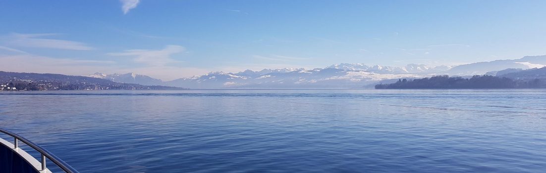 Nach der Besorgung fuhr ich noch ein kleines Stück dem See entlang bis nach Meilen. Dabei tauchte das Alpenpanorama hinter dem oberen Ende des Sees immer schöner werdend hinter den Hügeln hervor. Ich wollte mir das in Ruhe ansehen und geniessen. Deshalb nahm ich die Fähre nach Horgen auf die andere Seeseite und konnte so in aller Ruhe ein paar Fotos dieser schönen Aussicht schiessen.