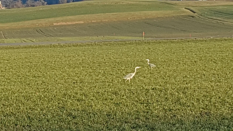 Unterwegs habe ich es nun doch endlich geschafft, Fischreiher vor die Linse zu bekommen. Normalerweise flogen die nämlich jedesmal davon, sobald ich anhielt. Bis ich dann das Handy gezückt hatte, waren sie meist zu weit weg, um noch ein brauchbares Foto zu machen.