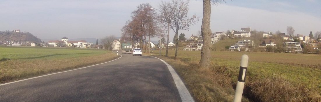 In Othmarsingen biege ich ins Bünztal ab, kurble hinauf nach Ammerswil und auf der anderen Seite, durch schattigen Wald, gleich wieder hinunter nach Lenzburg.