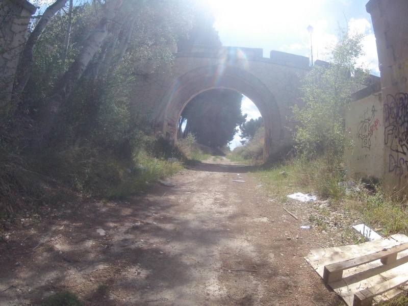 Dass ich heute längere Teile der Strecke auf Via Verdes, auf Trassen von ehemaligen Eisenbahnstrecken, fahren würde, habe ich beim Anschauen des Tracks auf GoogleEarth schon bemerkt. Dass es aber gleich zwei Strecken sein würden ist mir dabei nicht aufgefallen. Der Einstieg in den ersten Teil war wiederum recht harzig. Auch Teile im Track fehlten. Aber als ich in Alcoi durch eine Art Bahnhofsmauern fuhr, war für mich alles klar. Das Tunnel, in seiner charakteristischen Form, bildete denn auch den Abschluss des Bahnhofes. Die Via Verde von Alcoi, war bis jetzt das absolute Highlight dieser Fahrt.