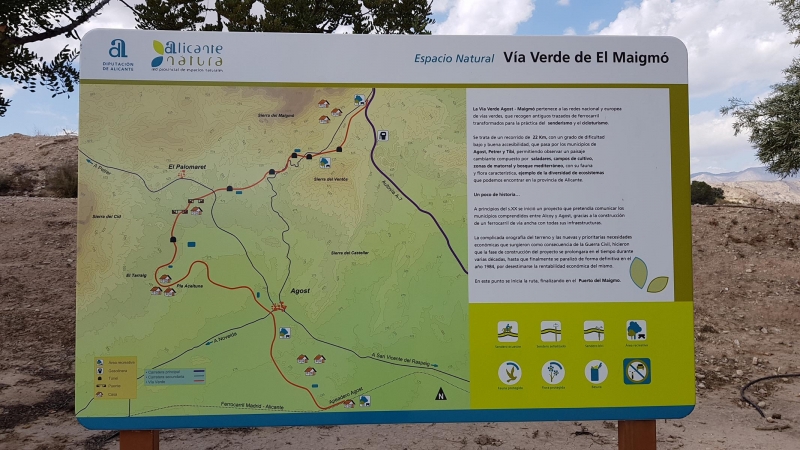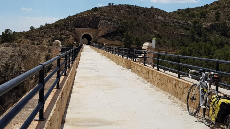 Die zweite Via Verde hier in der Übersicht. Ich bin zwischen dem 3. und dem 4. Tunnel von oben dazugestossen. 16 KM etwa die Strecke. In Agost endete auch der Track der Euroveloroute 8. Das waren dann also etwa 400 KM Radweg, Fernroute, Euroveloroute 8. Ich erlebte viel Abwechslung auf diesen Kilometern. Ich musste aber auch sehr viel improvisieren. Es gibt sicher ein paar interessante Streckenabschnitte. Aber ich denke, wenn man die Euroveloroute 8, Abschnitt Valencia, einem breiteren Publikum zur Verfügung stellen möchte, muss noch sehr viel getan werden. Nur einfach schwach befahrene Strassen benützen lassen, genügt bei weitem nicht. Wegweiser, Übersichtstafeln, GPS-Tracks die stimmen und durchgehend sind, Kartenmaterial, das sind meiner Meinung nach die Mindestvoraussetzungen. Ich denke für meinen Heimweg, werde ich kaum die Pilgerroute für Radfahrer nach Santiago de Compostela benützen. Ist mir einfach zu zeitraubend, zu unsicher, zu wenig stimmig.