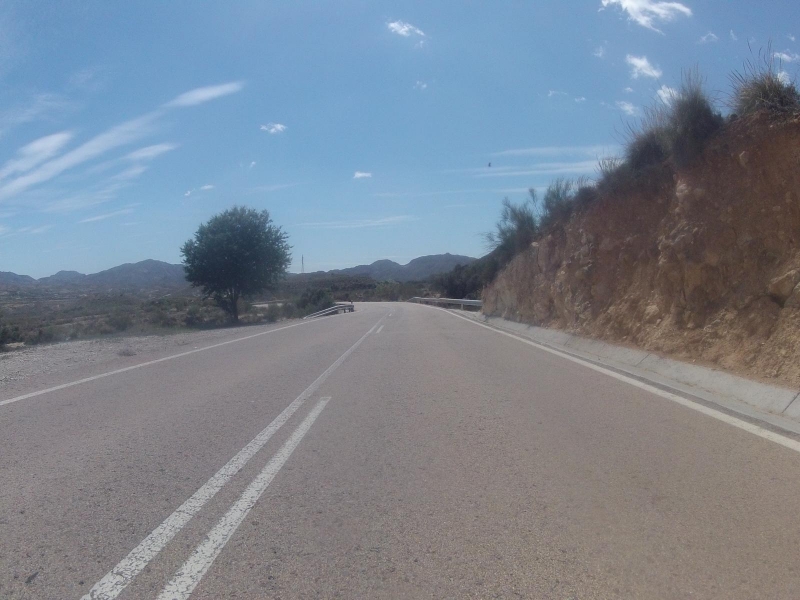 Wir sind froh, dass wir nach der Durchquerung dieser letzten Ausläufer der Sierra Cabrera endlich wieder das offene Land erreichen und endlich auch unsere Fahrtrichtung ändern können. Aus dem anfänglichen Seitenwind wird mit der Zeit ein kräftiger Rückenwind.