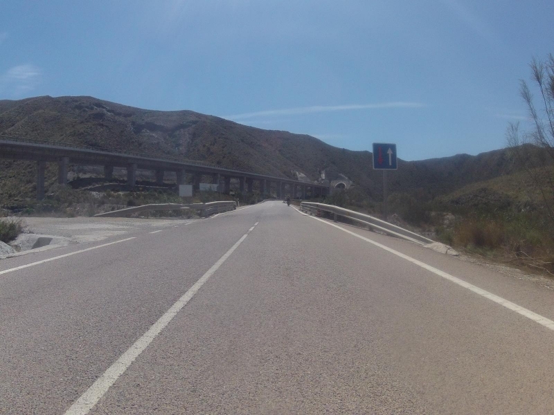 Meine Information über das vor uns liegende Viadukt der Schnellbahn von Murcia nach Almeria, werden in diesem Wind wohl nicht viele Teilnehmer mitbekommen haben. Es handelt sich hier um das selbe Bahntrasse, das in Almeria und weiter nördlich in Murcia immer wieder erscheint, bis auf ein Stück in der Gegend von Vera, fertig gebaut ist, aber auf dem keinerlei Bahninfrastruktur verbaut ist.