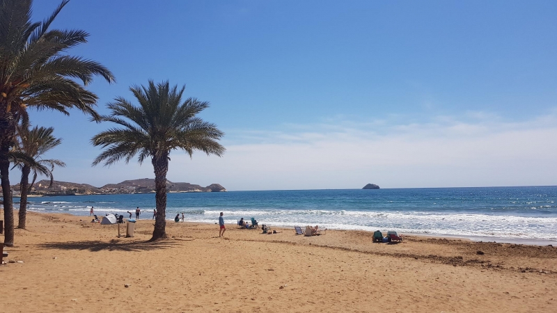 Nicht nur für mich, auch für die Gäste war es die letzte geführte Rundfahrt vor der Heimreise. Wie üblich nach der Königsetappe ein Ausrollen, durch die Ebene nach Pulpi, ein gemächlicher Anstieg auf den heutigen höchsten Punkt, danach sausen lassen bis fast vor das Restaurant mit unserem Lunch in San Juan de los Terreros. Die Sicht von einem meiner Lieblingsstrände hinaus auf das Meer genoss ich heute ganz besonders.