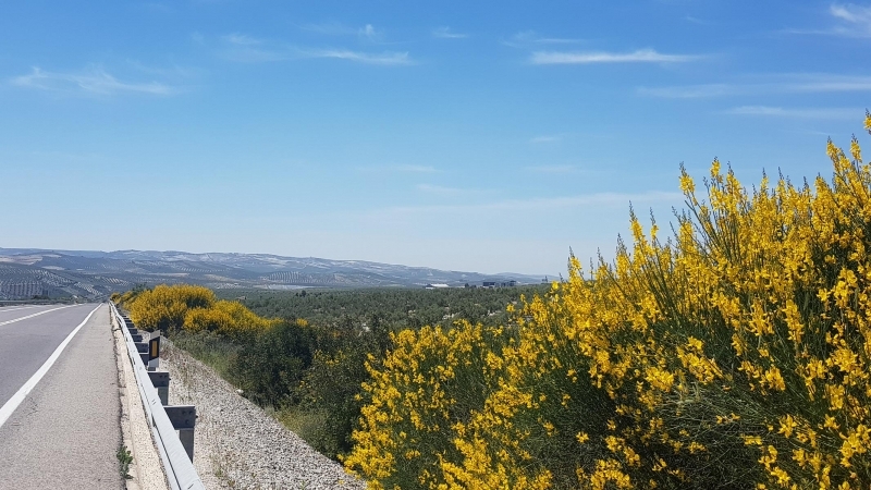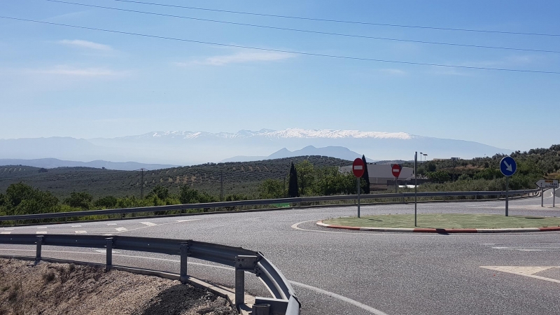 Den Weg, wieder zurück auf meinen violetten Navigationsstrich fand ich rasch, trotz der engen Gassen. Da hatte das Navi deutlich mehr Mühe, endlich erkennen zu können, wo ich mich bewege. Die grosse Strasse hinunter, meist auf der Busspur, durch ein paar Kreisel und ich war draussen, aus Granada. Am Anfang hatte es noch ziemlich viel Verkehr, doch mit der Zeit verlor der sich in der Industriezone.