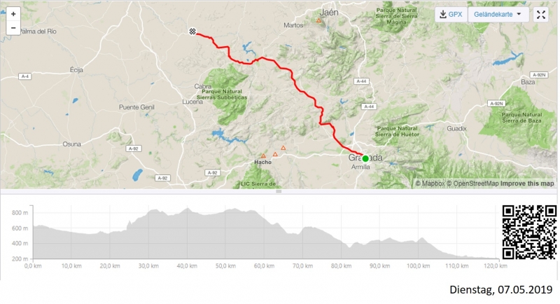 Da waren sie plötzlich wieder, die vier älteren Herren vom Radclub Granada. Wir wechselten ein paar Worte. Ein Gemisch aus Spanisch und Englisch. Zwei versuchten mir zu folgen. Mein Navi wollte links hinauf. Ich war an der Abzweigung vorbeigefahren. Musste kehren, “buenos dias” und “adios”.
