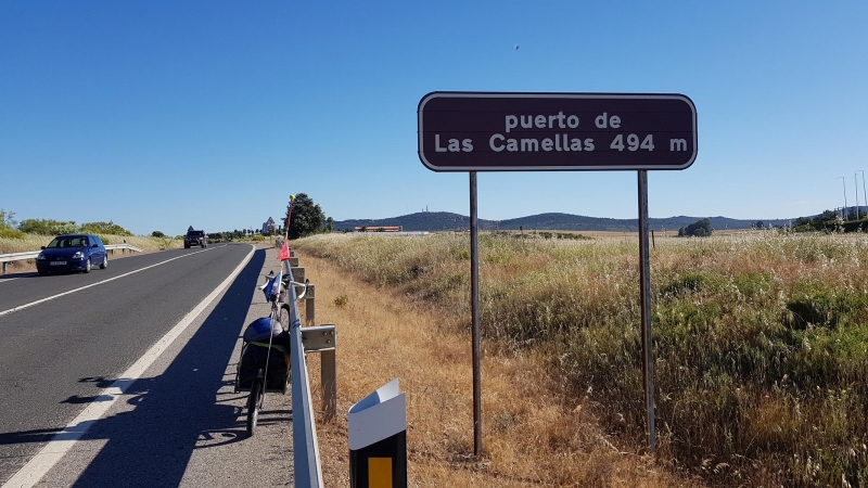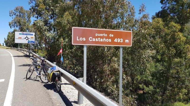 Es war Mittagszeit, die Strasse nicht besonders steil, das Thermometer aber ganz knapp an der 30 Grad – Marke. Dazu ein bisschen Gegenwind. Ich fand im nächsten Dorf, etwa in der Hälfte der Steigung, tatsächlich einen schattigen Platz für meine Mittagsrast. Danach wurde es noch steiler und noch heisser. Aber zur Belohnung winkte eine zweite Passtafel.