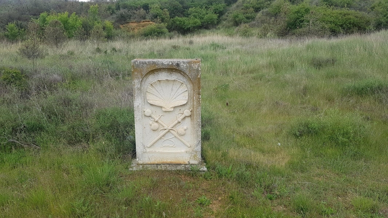 Die heutige Gegend war vor allem Landwirtschaftsgebiet. Über weite Strecken sind entlang dem Jakobsweg Eschen gepflanzt. Das sind aber auch oftmals weit und breit die einzigen Bäume. Keine richtigen Wälder. Heute war das Wetter nicht besonders schön, trocken zwar, aber kaum Sonne. Könnte mir schon vorstellen, dass es hier ganz schön heiss werden kann.
