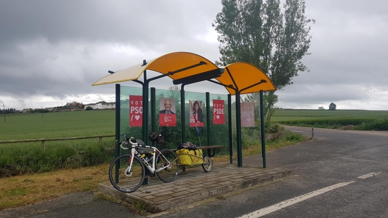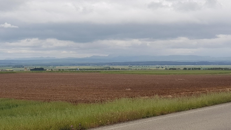 Leider fand ich den Weg zu dieser Kathedrale nicht. Wie ich später auf der Aufzeichnung des Tracks sah, bin ich wohl viel zu früh in Richtung der N-120 gefahren. Jedenfalls war ich plötzlich ausserhalb der Stadt, der Anstieg zur Passhöhe begann. Wellenförmig, nicht besonders steil, aber immer etwas bergauf. Dazu die drohende, schwarze Decke der Niederschläge.