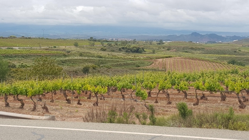 Zu spät hatte ich realisiert, dass ich Kastilien und Leon verlassen hatte. Die neue Region ist jetzt La Rioja. Das Täfelchen habe ich zwar am Strassenrand gesehen, aber es vorerst für eine weitere Provinz in Kastilien und Leon gehalten. La Rioja ist Region und Provinz in einem. Uns aber wohl eher bekannt als Weinbaugebiet von Nordspanien. Es dauerte denn auch gar nicht lange, bis sich die ersten Reihen von Reben entlang der Strasse zeigten.