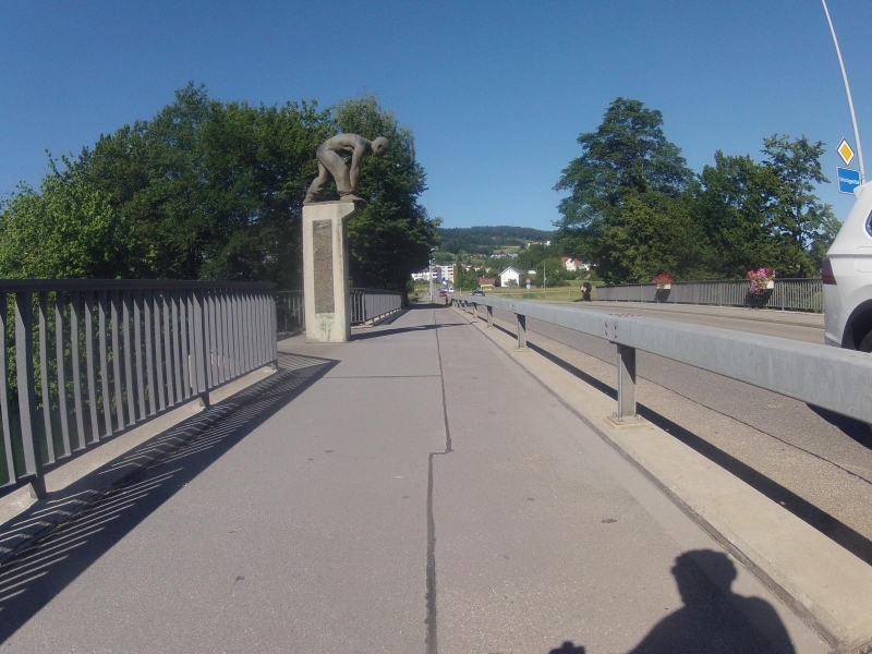 Nach der Brücke geht es rechts weiter, durch den Schachen, etwas am Verkehr vorbei zum Wasserschloss, wo die drei Flüsse Aare, Reuss und Limmat zusammenfliessen. Ich fahre weiter nach Turgi und überquere dort die Limmat zum ersten Mal.