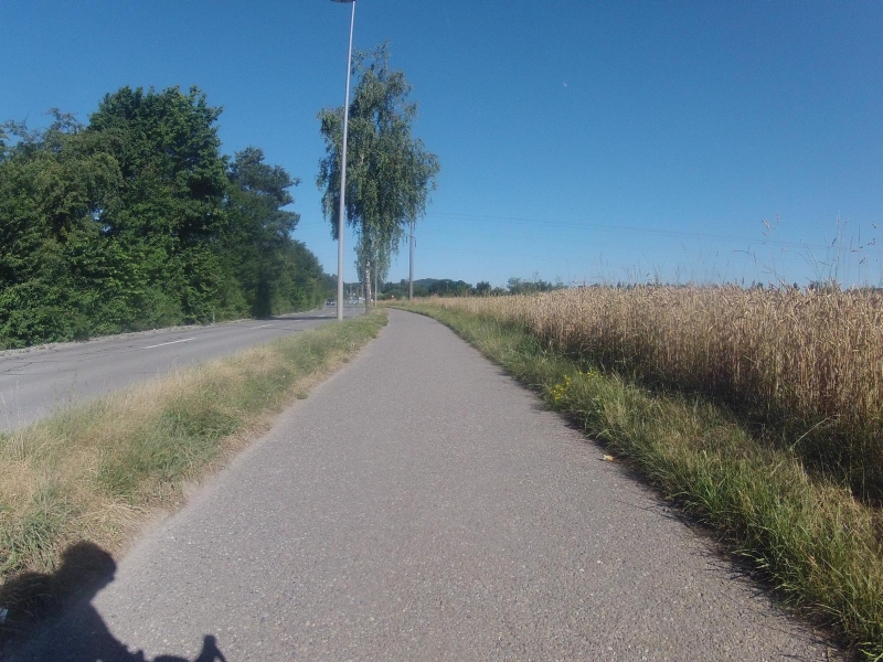 Danach muss ich die Höhenmeter aus der Abfahrt von Würenlos wieder zurück erarbeiten. Es geht am Bahnhof von Killwangen vorbei, über die Hauptverkehrsachse ein Stück weiter hinauf, bevor es anschliessend relativ flach nach Neuenhof zurück geht.