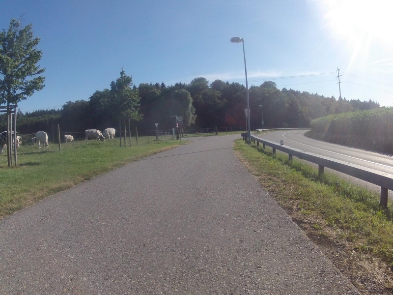 Aus den vielen Fahrten auf dem früheren Heimweg von der Arbeit kenne ich hier ein paar Strässchen ausserhalb des Feierabendverkehrs. Gelange so nach Baden, fahre dort auf Radwegen weiter nach Dättwil und komme schon bald an den Hügel, der zwischen dem Limmattal und dem Reusstal steht.
