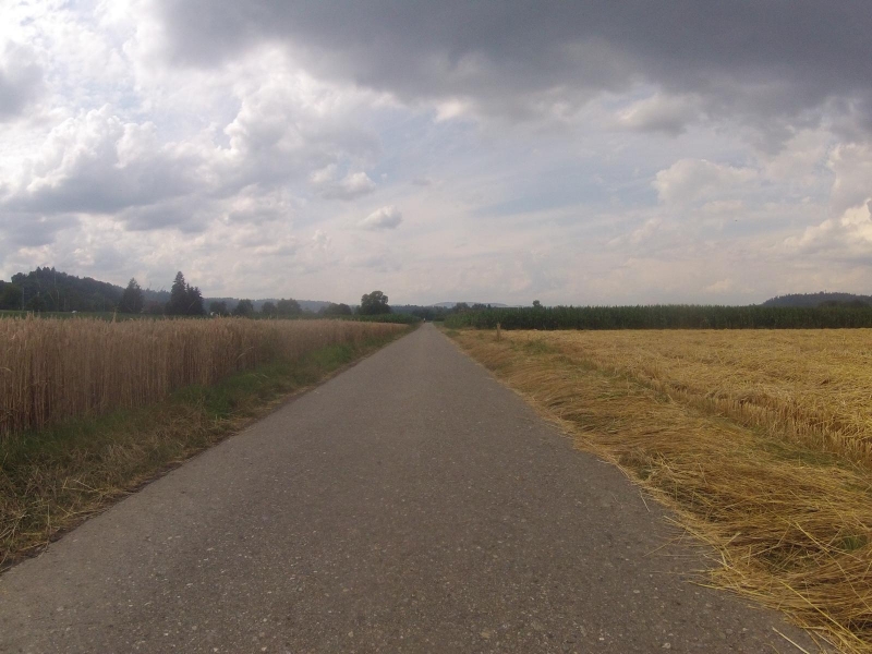 Über mir schiebt sich eine schwarze Wolke von Westen (links in meiner Fahrtrichtung) über das Tal. Ein paar kräftige Windstösse sind auch dabei. Ab Seon klart der Himmel wieder auf und kurz nach Lenzburg fahre ich schon wieder unter der Sonne.