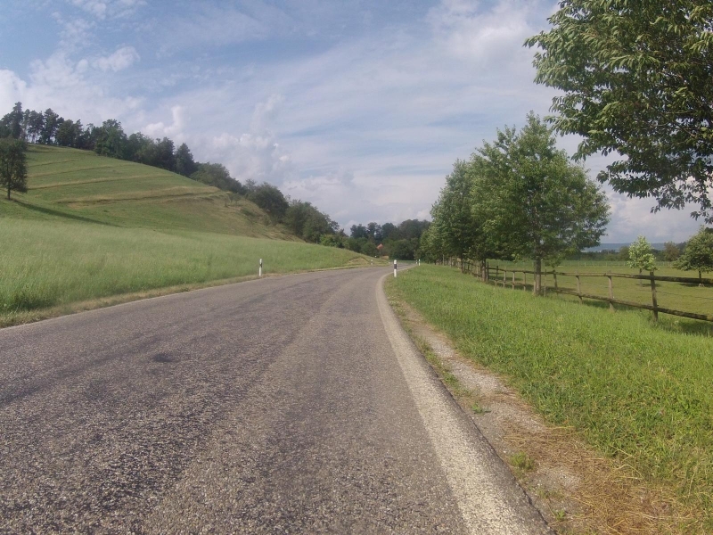 Letztes Jahr wurde die Strasse von Sarmenstorf über einen Hügel nach Seengen im Seetal neu gemacht. Es rollt sich jetzt viel besser darauf, keine Flickstellen mehr, schöner, feiner Belag. Vermutlich wurde die Strasse auch etwas verbreitert. Fast auf dem höchsten Punkt hat man einen Moment lang einen schönen Blick in das unterste Stück des Seetales.