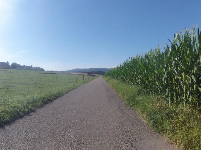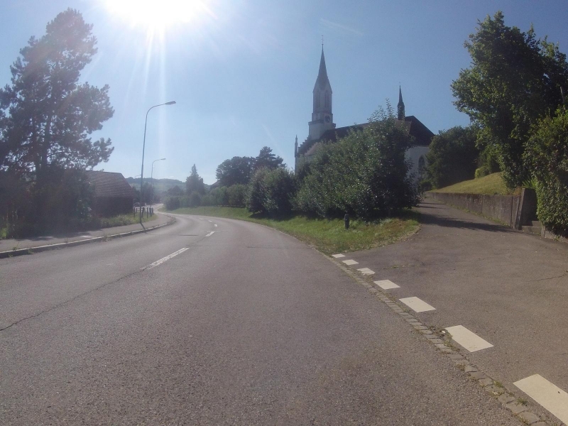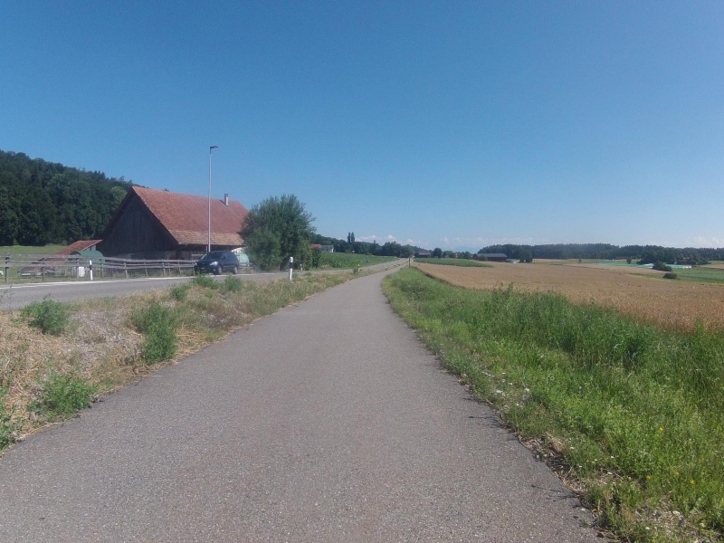 Bis nach Othmarsingen sind keine wesentlichen Hügel mehr zu nehmen. Ich durchquere Wohlen, folge weiter Radwegen und kleinen Strässchen, manchmal entlang von hoch gewachsenen Maisfeldern oder goldgelben Getreidefeldern.