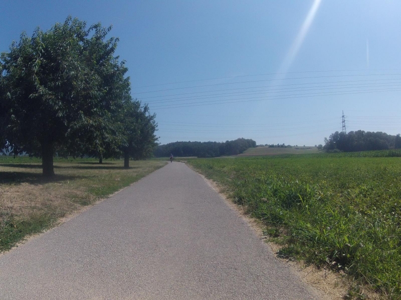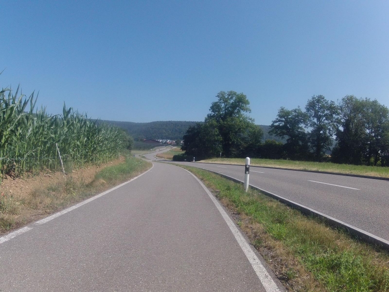 Nicht, dass es auf der Rheintalstrasse besonders viel Verkehr gehabt hätte, aber manchmal habe ich es lieber, wenn es um ein paar Bäume oder Getreidefelder herum geht, statt einfach nur schnurgerade ins nächste Dorf.