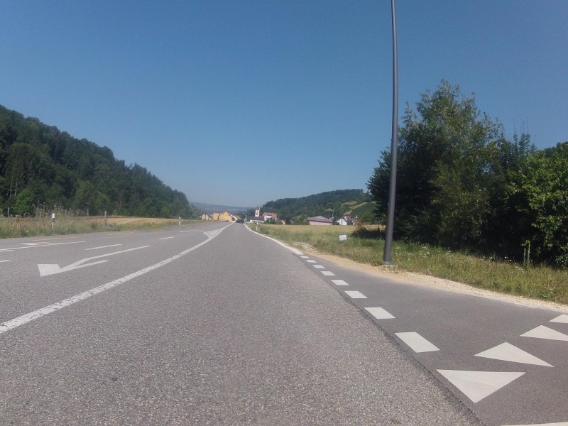 Kurz von Etzgen biege ich rechts ab ins Dorf hinauf und so auch auf den Radweg, der mir ein paar Meter auf der Rheintalstrasse erspart.