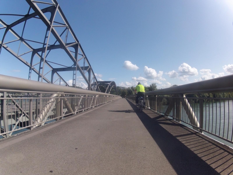 Ich folge zuerst der Hauptstrasse bis nach Koblenz, dann auf den üblichen Radwegen rheinaufwärts nach Bad Zurzach.