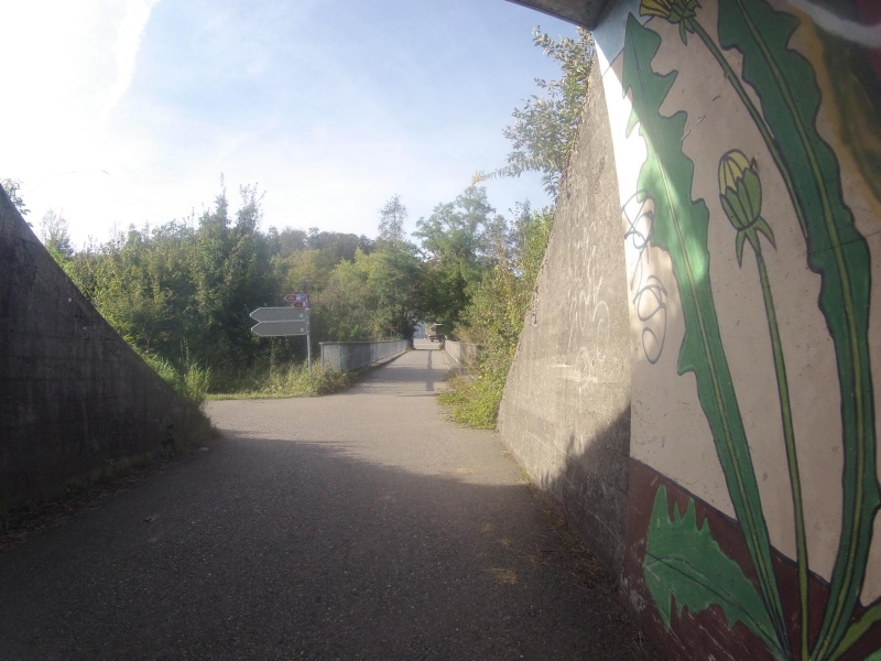 bis nach Mägenwil, ab wo ich der Radroute 34 (Alter Bernerweg) eine Weile folgte. Ich fahre ausserhalb des Aaretals, aber einigermassen parallel dazu, in westlicher Richtung. Der Wind bläst heute ziemlich stark über die Jurahügel. Die Sonne steht schon recht tief. Viele der Bilder der Kamera am Lenker sind heute deshalb unbrauchbar belichtet.