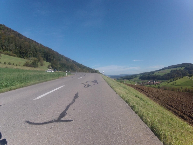 Heute lasse ich es auf der Hauptstrasse in die Tiefe in Richtung Fricktal sausen. Nehme den Radweg erst nach den Dörfern.