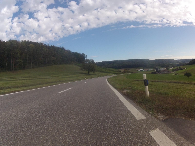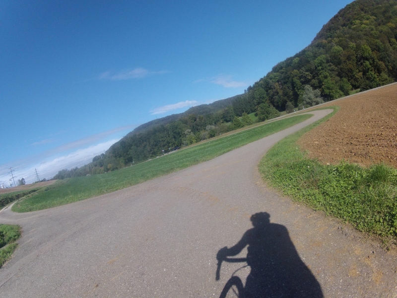 Auch in Bad Zurzach scheint die Sonne nicht mehr. Ich kurble über den Zurzacherberg. Erst bei der Abfahrt ins Surbtal hinunter lässt sich erkennen, dass ich mich wohl gerade am Rande der aufziehenden Bewölkung befinde.