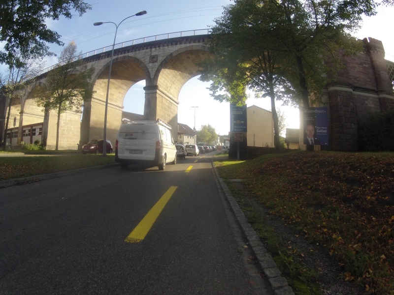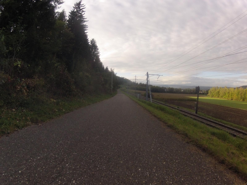 Während der Abfahrt passiere ich die Ortschaften Siglistorf und etwas weiter unten Wislikofen. Bis kurz vor der Verengung des Tales konnte ich das Meiste noch an der Sonne fahren. Erst fast ganz unten am Rhein, da war der Sonnenstand bereits zu tief, und der Schatten der Hügel entlang dem Rhein viel zu lang, als dass es noch für Sonne auf dem Radweg gereicht hätte.