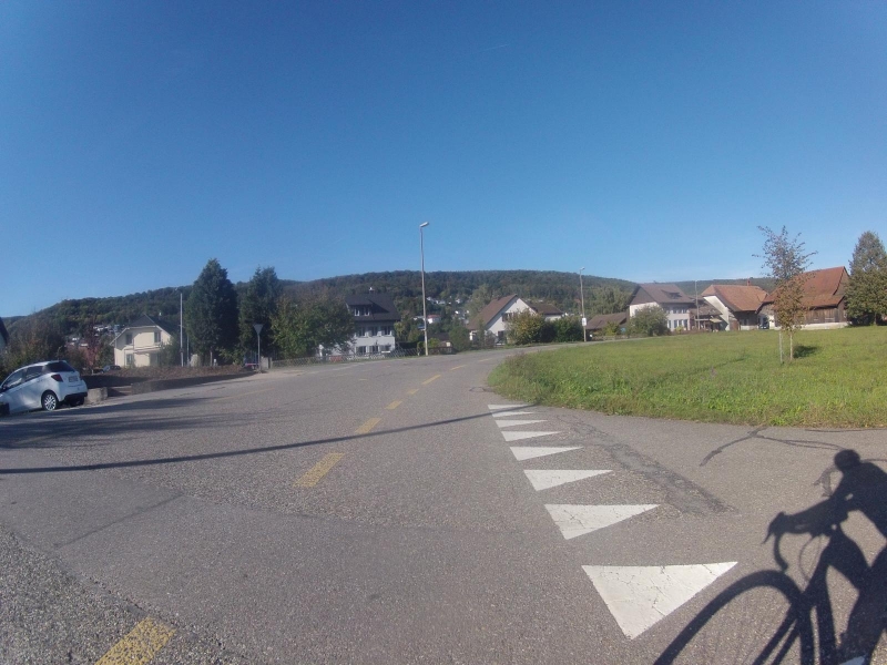 Ich fahre heute bei diesem Kreisel gerade aus, hinunter in die Ebene, statt wie sonst üblich durch die Quartiere der Stadt. Das war vielleicht ein Fehler, denn damit fahre ich zum Schluss der heutigen Runde doch noch voll in den Gegenwind.