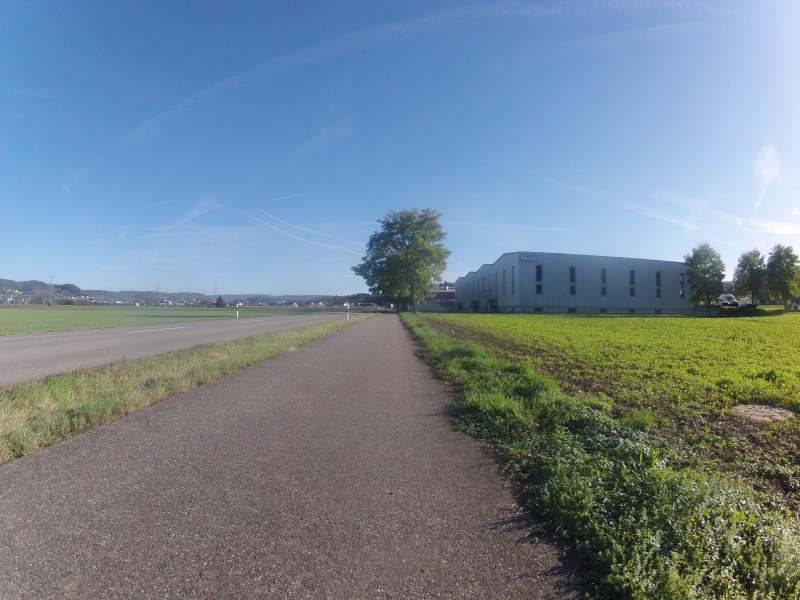 Etwa ab Leibstadt kann ich wieder auf den Radweg wechseln. Ich bleibe darauf und fahre so heute auch wieder die Schlaufe hinunter an den Rhein und durch das Dörfchen Full.