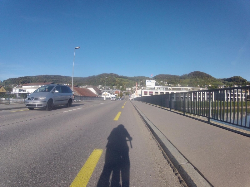 Nach diesem kleinen Umweg, über fast leere Strassen, gelange ich an die Mündung der Aare in den Rhein und fahre ab jetzt im Aaretal aufwärts.