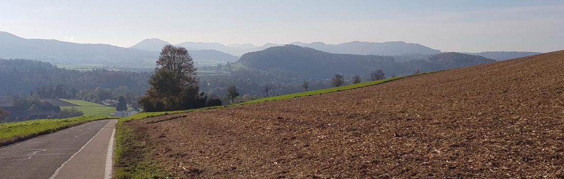 Zu oberst im Surbtal, kurz bevor die Strasse hinunter nach Dielsdorf geht, gibt es jeweils einen schönen Ausblick hinaus auf das Neeracher-Ried und weiter draussen, das Gelände des Flughafens. Heute verschwand das wohl im Dunst und den letzten Nebelschleiern.