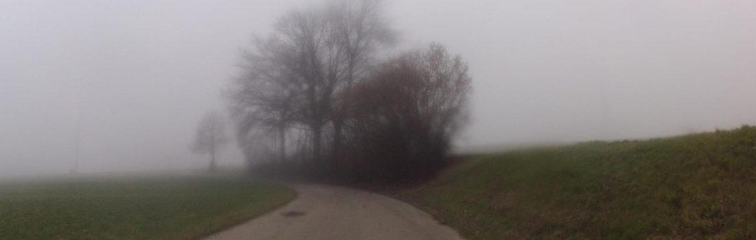 In Birri kurbelte ich über den Hügel nach Muri hinauf. Beinahe hätte ich es geschafft. Die Sonne war bereits als leuchtende Scheibe am Himmel zu erkennen. Doch nach Muri wurde der Nebel wieder dicker. Auch das Bünztal, wenigstens der obere Teil, war vom Nebel zugedeckt.