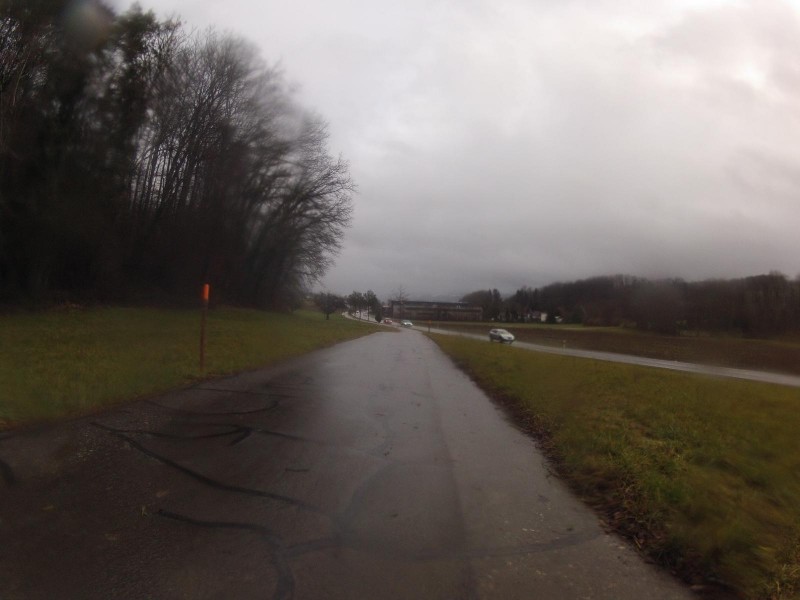 Anfänglich liessen ein paar Löcher in der Wolkendecke sogar das Blau des Himmels durchschimmern. Doch je weiter ich im Surbtal hinauf kam umso düsterer wurde es. Ob sich da vielleicht gerade jetzt vor meinen Augen die Niederschlagszelle, welche ich vorhin über dem Villigerfeld gesehen hatte, über das Höhtal und entlang der Lägern weiter nach Osten treiben liess? Ich hatte es nicht eilig, pedalierte gemütlich vor mich hin, liess den Regenschauer durchziehen, bevor ich selber ins Höhtal einbog.