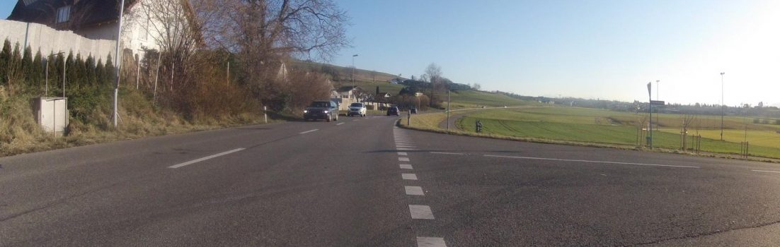Nach dem Waldrand kommt schon die Spitzkehre für die Rückfahrt im Seetal. In Seengen wechsle ich die Seite des Seetales und gelange somit schon in den Schatten des Hügelzuges zwischen dem Seetal und dem Wynatal.